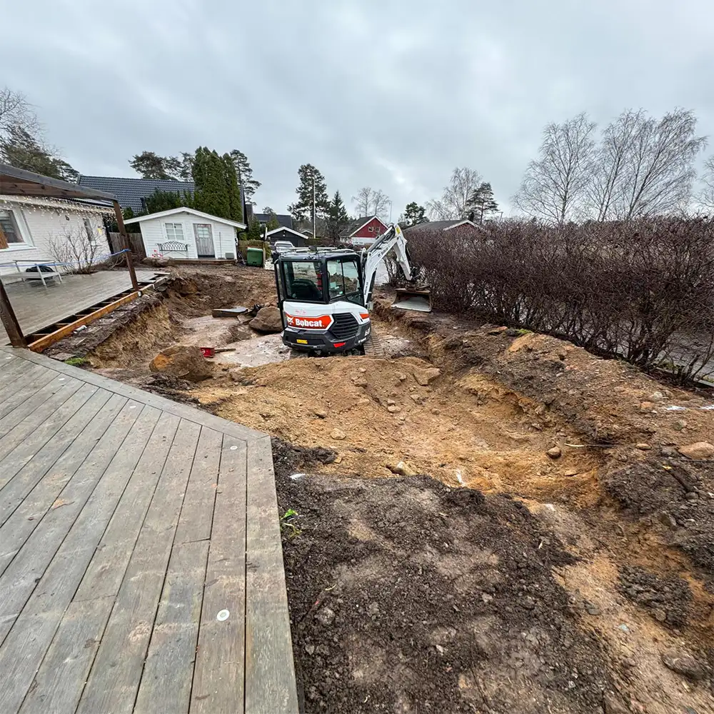 Markarbete Sigtuna – Behöver du hjälp med markarbete i Sigtuna? Vi hjälper villaägare, fastighetsägare och bostadsrättsföreningar med allt från dränering och schaktning till stenläggning, grundläggning, dagvattenlösningar och andra markentreprenader i Sigtuna. Oavsett om du planerar en tillbyggnad, vill bygga pool, förbättra avvattningen eller skapa mer funktionella ytor runt fastigheten ser vi till att arbetet utförs med rätt metod från början